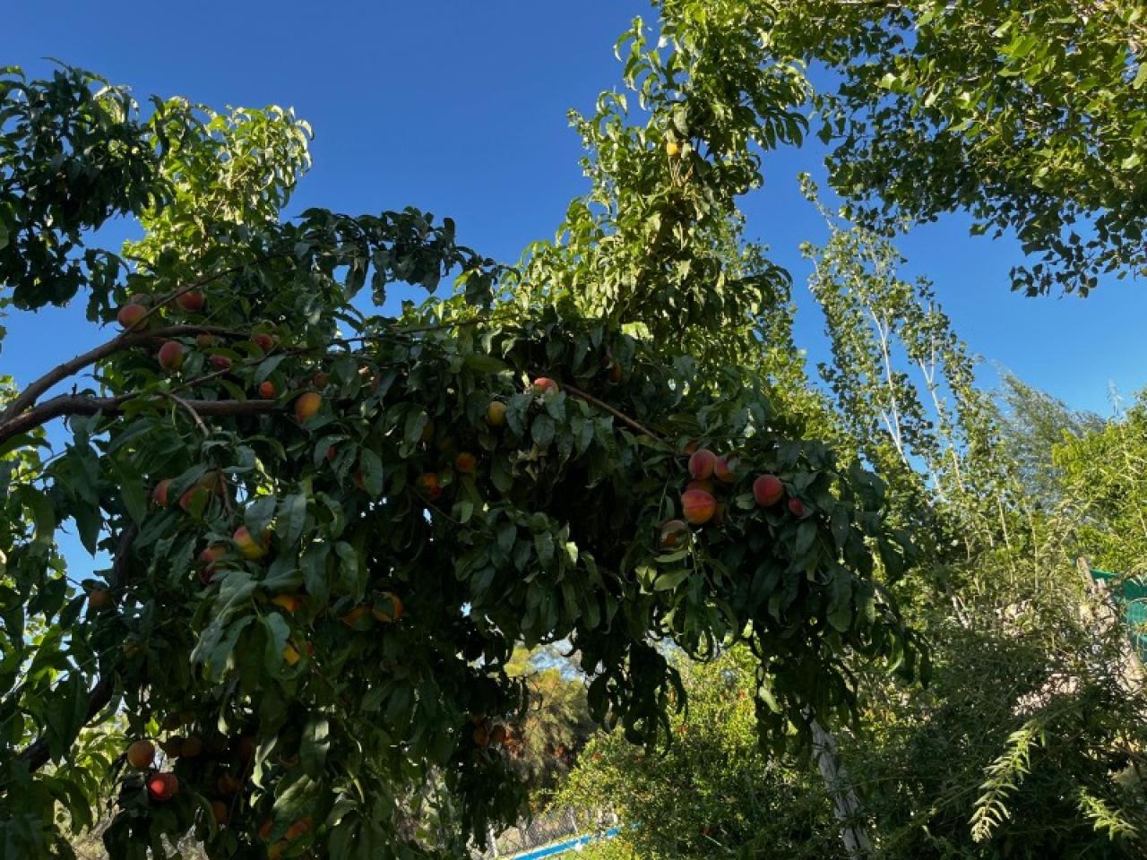 Árboles Frutales: Disfruta de la cosecha propia con duraznos, damascos, granadas y olivos. 🍇