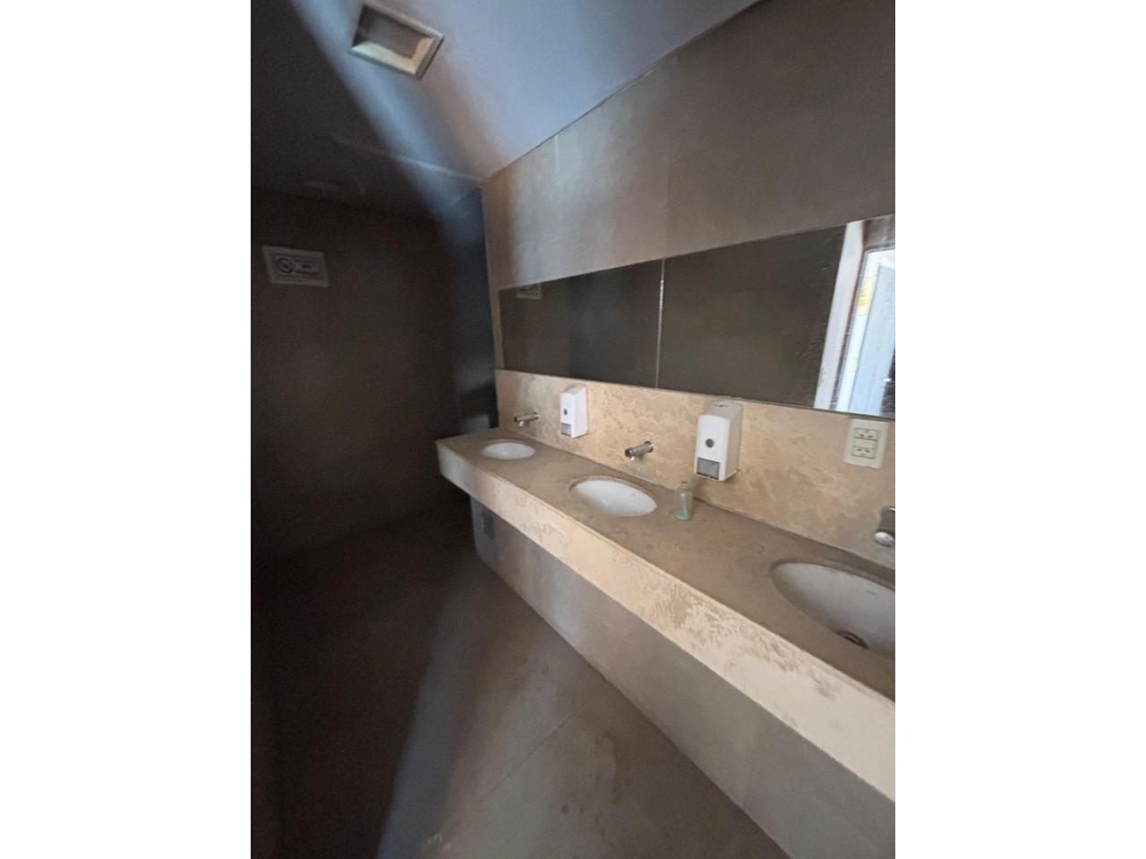 Planta Baja: salón planta libre con una superficie de 620 m² aproximadamente, cuerpo de baños (hombres y mujeres), privados, persianas metálicas y con frente totalmente vidriado y portón con ingreso independiente;