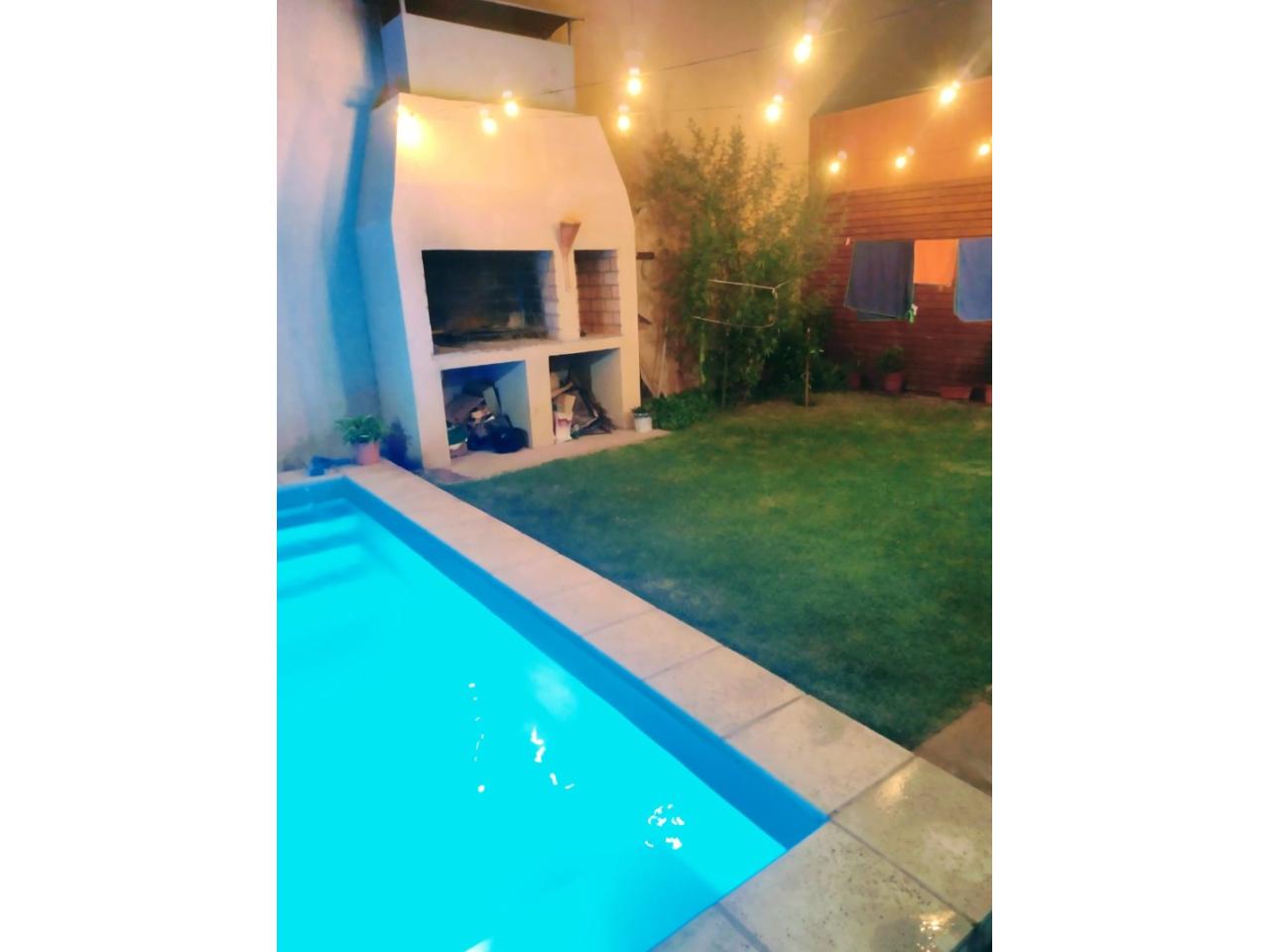 Fondo amplico con parrillero y pileta con bomba filtrante.