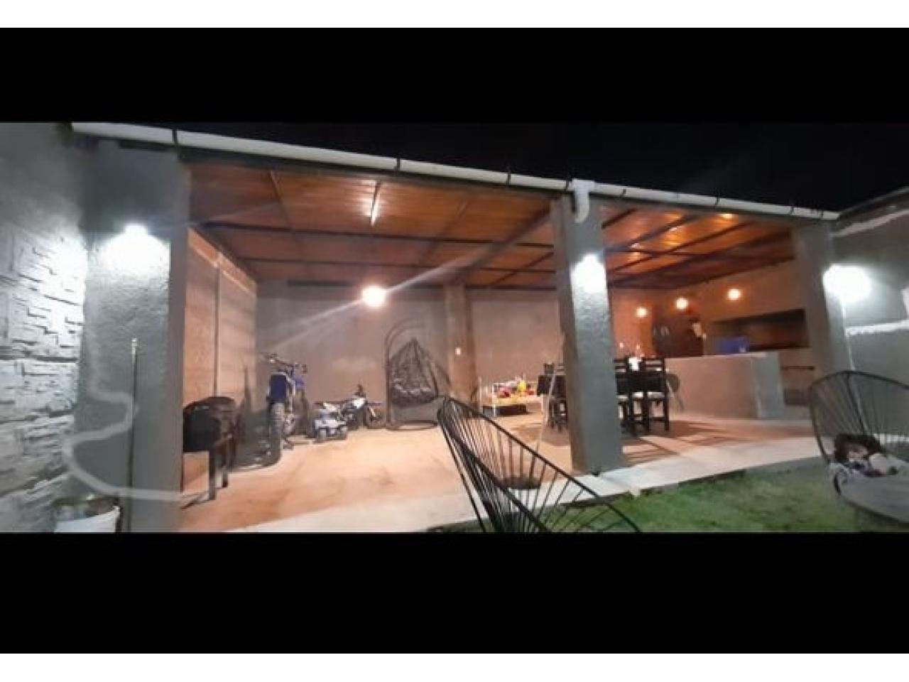 Casa de 2 habitaciones con placard empotrado. Cocina completa, lavadero. Quincho 60 m2 con parrillero completo con baño. Habitación de guardado en el fondo. Cochera techada. El terreno se encuentra cerrado en su totalidad. Excelente ubicación frente al Polideportivo del Barrio. Estar más cocina amoblda