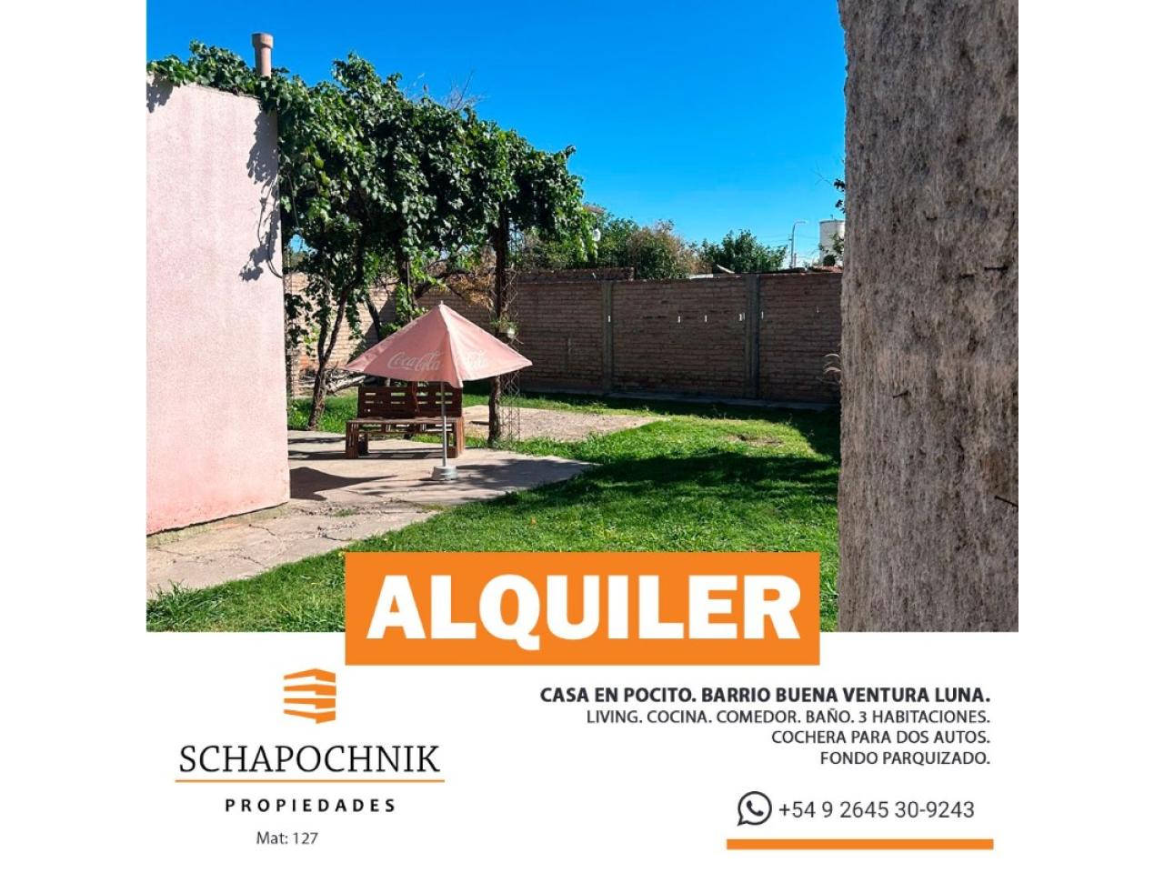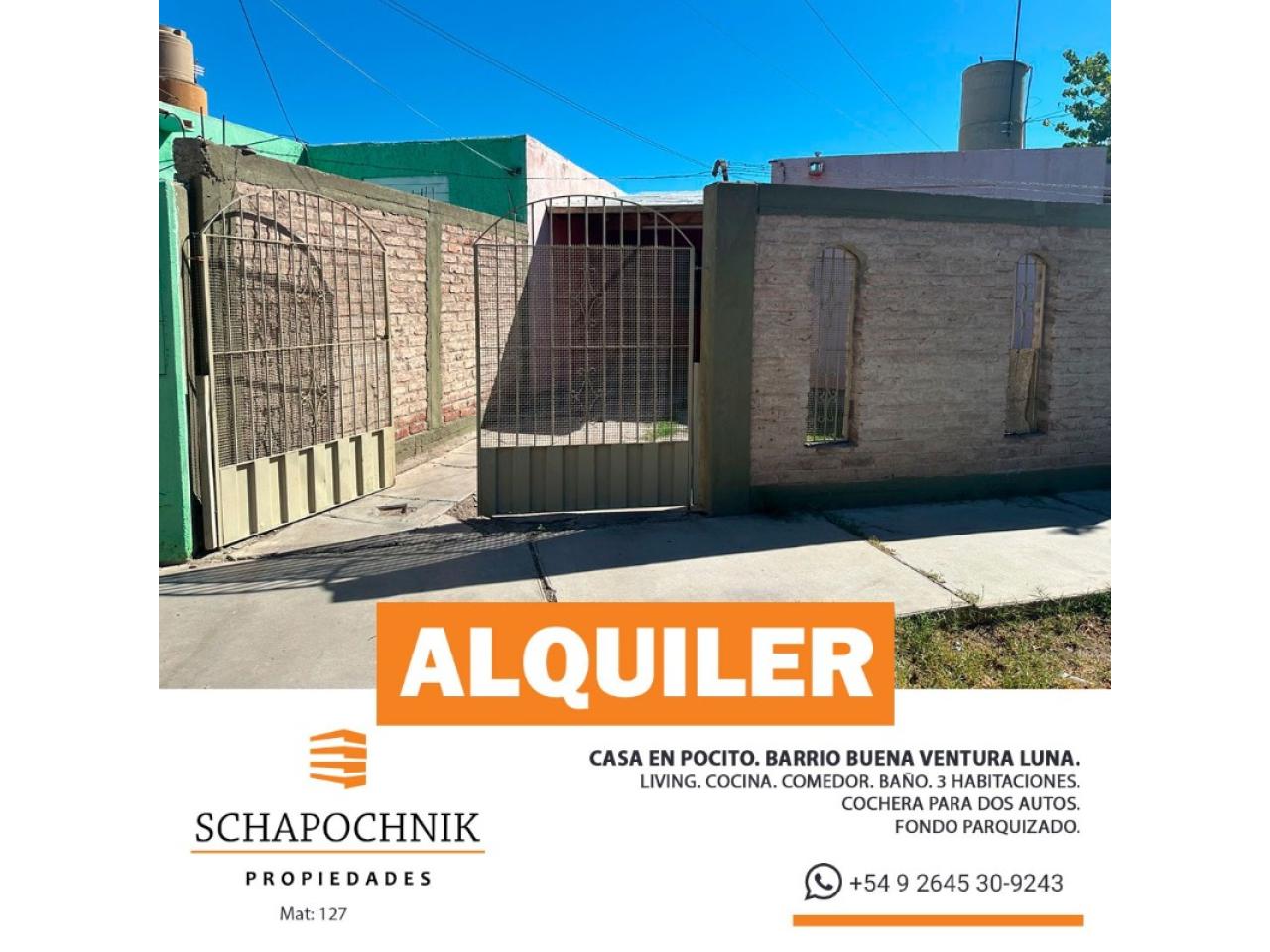 Alquiler Casa Barrio Buena Ventura Luna rawson