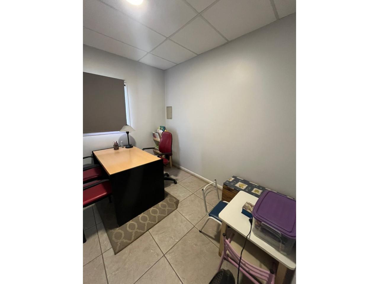 Planta baja: Cocina, 2 baños (uno para el personal de trabajo), 4 consultorios (uno de ellos separado con construcción en seco) conectados con un pasillo como sala de espera. Equipado con muebles correspondientes a las oficinas/consultorios, 5 aires acondicionados (uno en cada una de las oficinas y en la sala de espera).