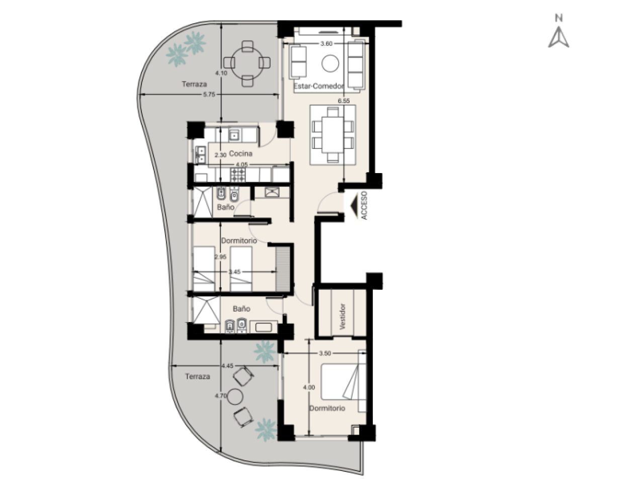 En Catamarán Residencias En Altura, este departamento en planta baja de 154 m propone una forma de vivir donde el espacio, la luz y el diseño se combinan para crear un hogar moderno y confortable.