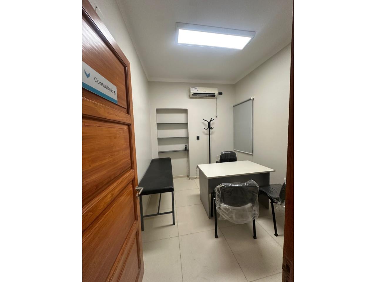 6 consultorios totalmente equipados (escritorio, sillas, camilla, aire acondicionado, cortinas black out, en algunos balanza, algunos equipos, etc)