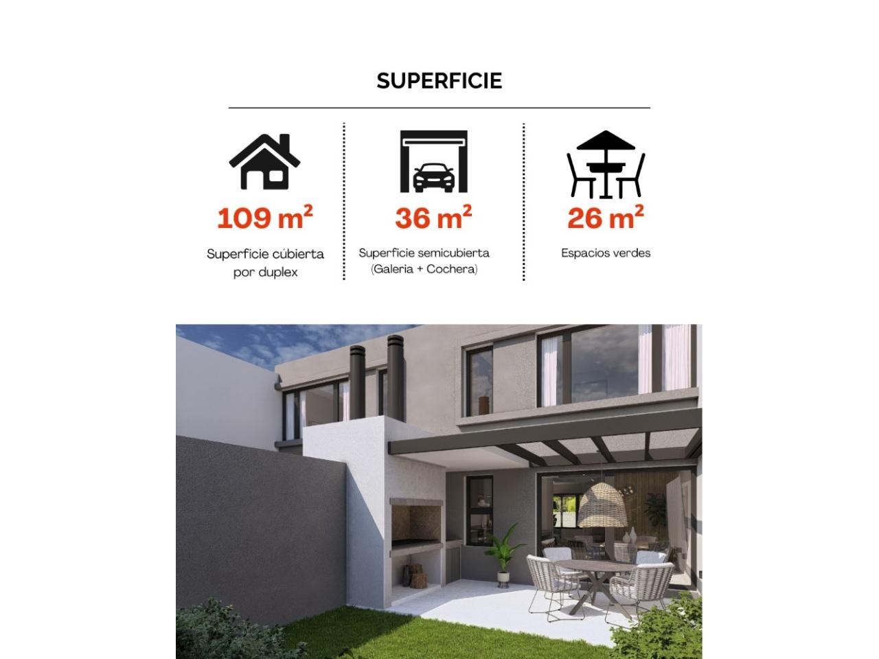Superficie total de cada duplex con terreno es de 140 mts2.