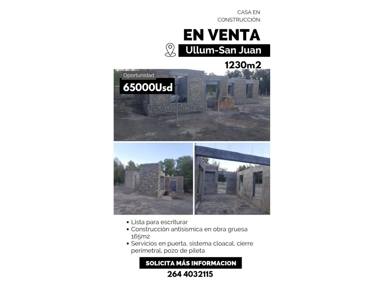 Excelente oportunidad de inversión en zona industrial mejorable de Ullum. Ambiente ameno y tranquilo, rodeado de naturaleza.