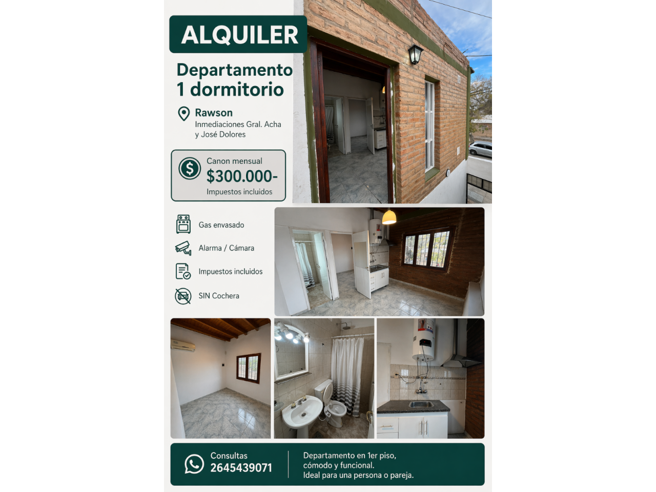 Alquiler Depto Una Habitacion. Rawson