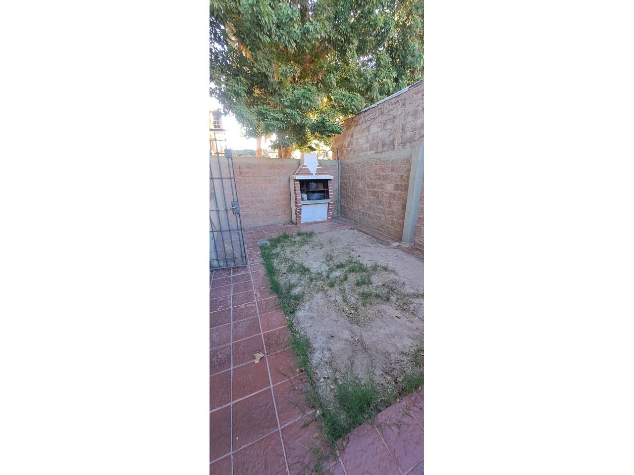 Patio con espacio verde y parrillero