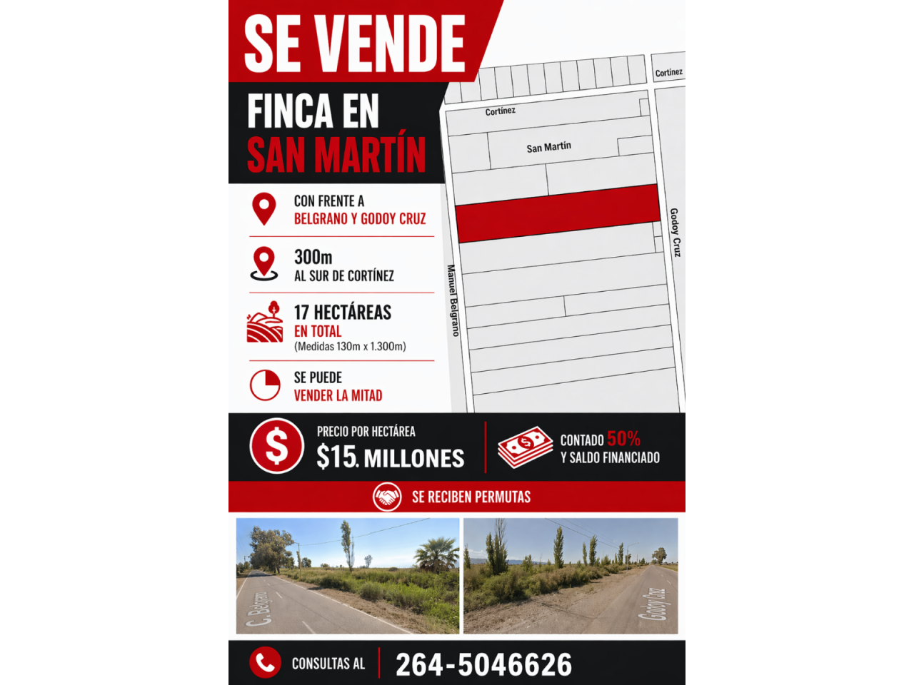 Con frente a dos calles pavimentadas, por Belgrano y Godoy Cruz