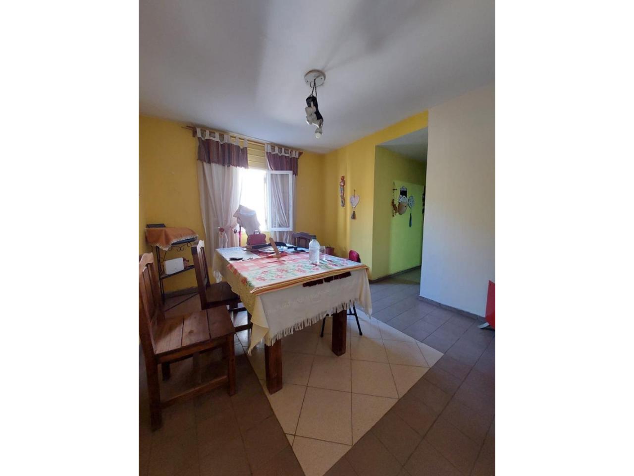 La propiedad se encuentra en primer piso con acceso por escaleras y cuenta con una cómoda distribución: 3 dormitorios, 1 baño, cocina independiente, living comedor amplio y cochera techada.