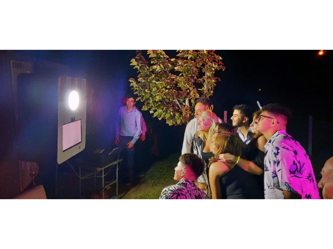 Cabina fotográfica de estructura abierta con capacidad ilimitada de personas. Una opción divertida para tu fiesta. Contamos con una variedad de cotillón para que se diviertan y las fotos se vean más divertidas. Una persona se queda a cargo del evento responsabilizándose del servicio que prestamos. No dudes en contratarnos.
