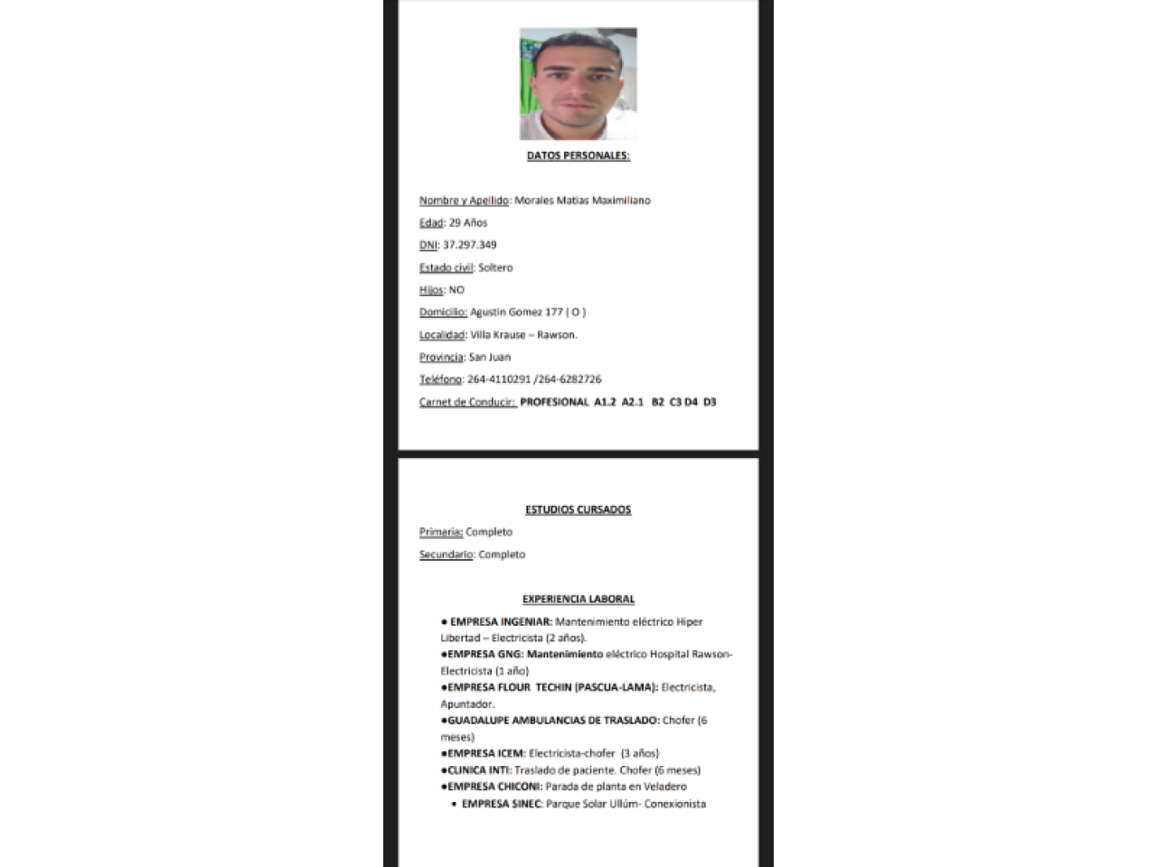 Me ofrezco para cualquier tipo de trabajo .....en lo posible de mañana.... Tengo Carnet profesional