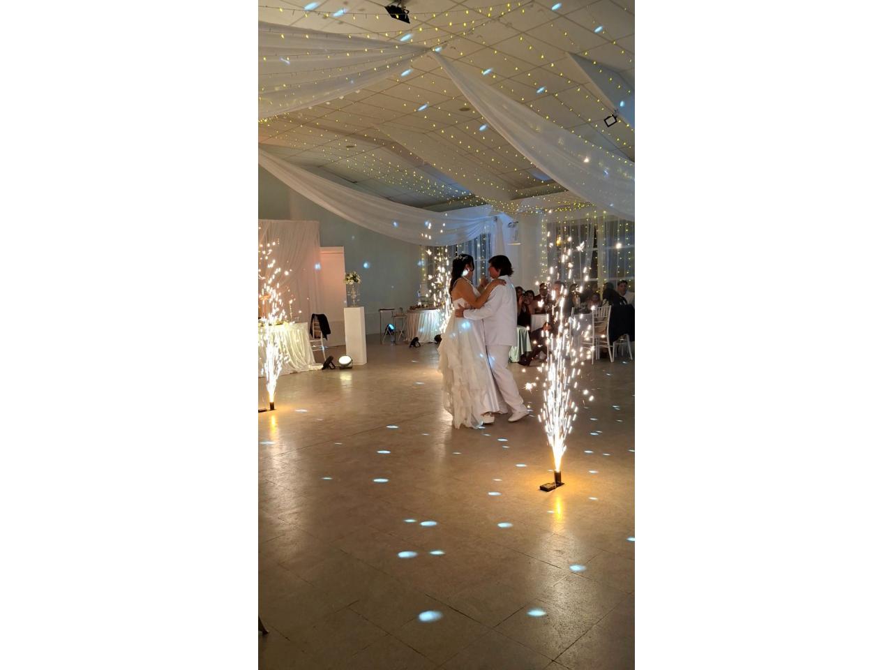 Las chispas frías son dispositivos especiales que producen chispas brillantes, generando un efecto visual de alto impacto sin el calor intenso del fuego convencional. Son seguros, versátiles y perfectos para destacar instantes únicos durante el evento.