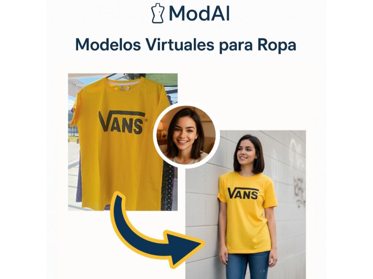 Con ModAI, transformá una simple foto de tu prenda en una producción profesional con modelo y fondo realista, sin gastar un peso en sesiones de fotos.