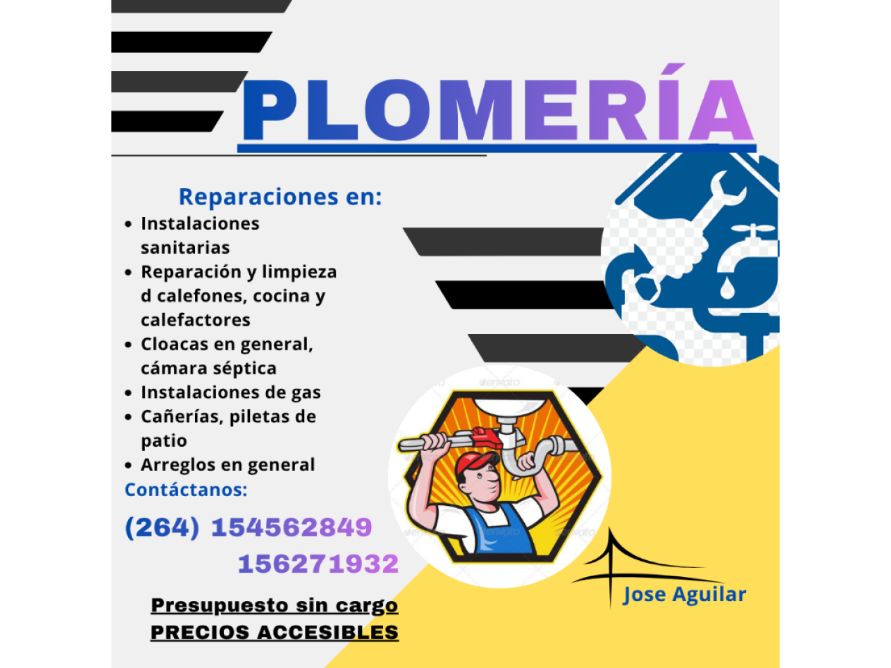 Plomero Agua Gas Cloaca 2646129149 Atencion Las 24 Hs
