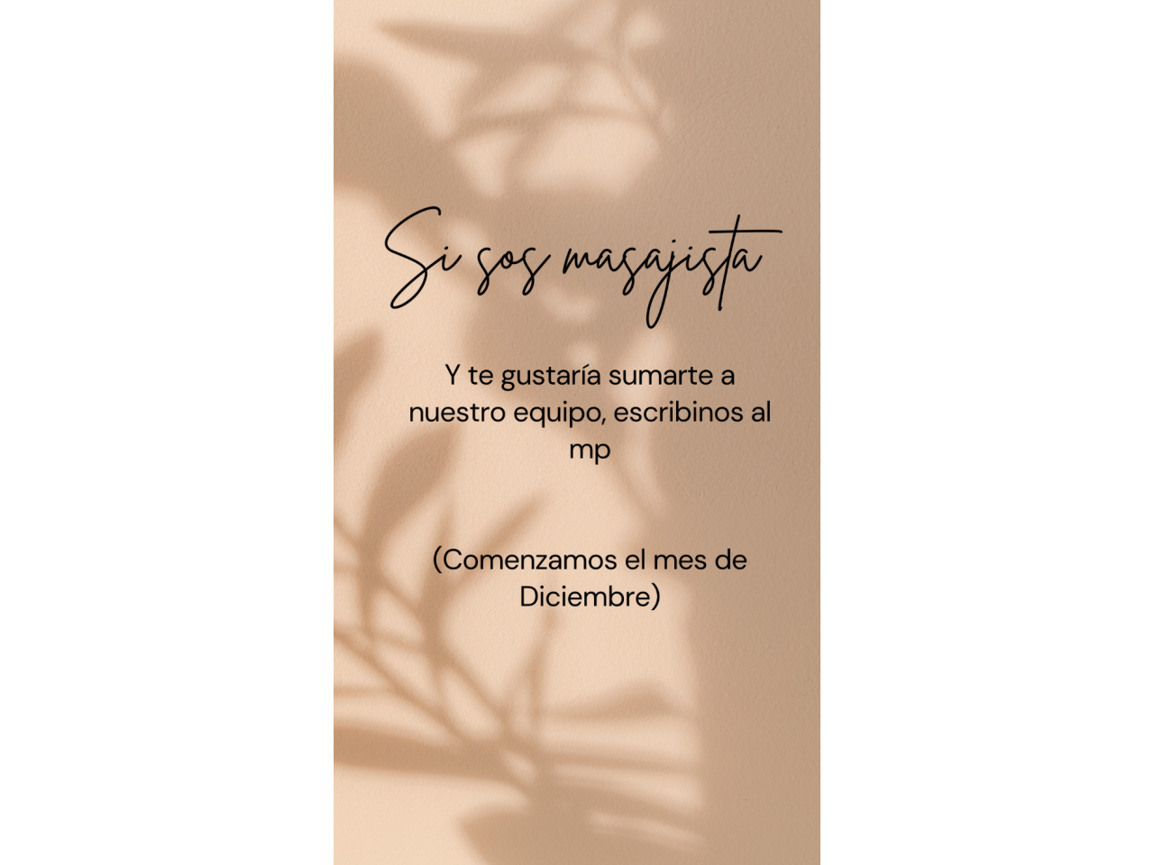 Tenemos un consultorio privado, que a partir del mes de Diciembre, queremos incorporar masajista. El consultorio está en capital. Si te interesa, comunícate con nosotras al 2643206363
