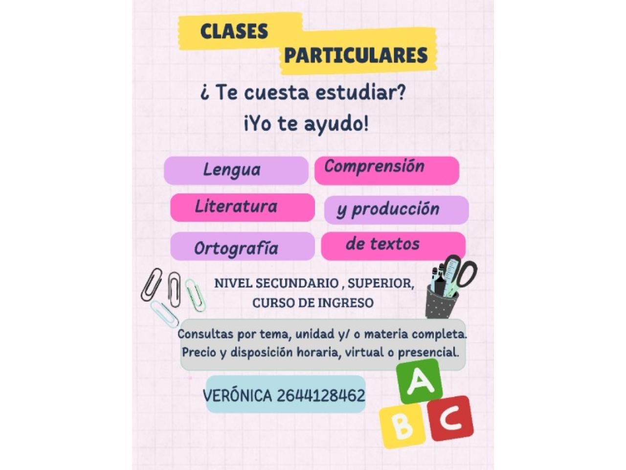 Clases particulares de lengua y literatura, ortografía, comprensión y producción de textos.