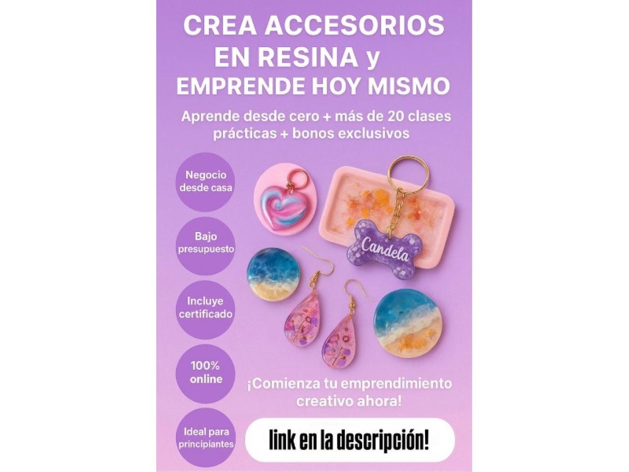 Si Buscas trabajo Té Ofrezco un Curso online de Accesorios en Resina Para principiantes desde cero que deseen tener su propio Emprendimiento o negocio ya que es Muy Rentable 🤑🫰🏻 y desdé Casa 🏠 Lo podés tener en tu Celular o en la PC ,si desean saber más les pasó la toda la información detallada, envíame un mensaje de WhatsApp "yo Quiero"