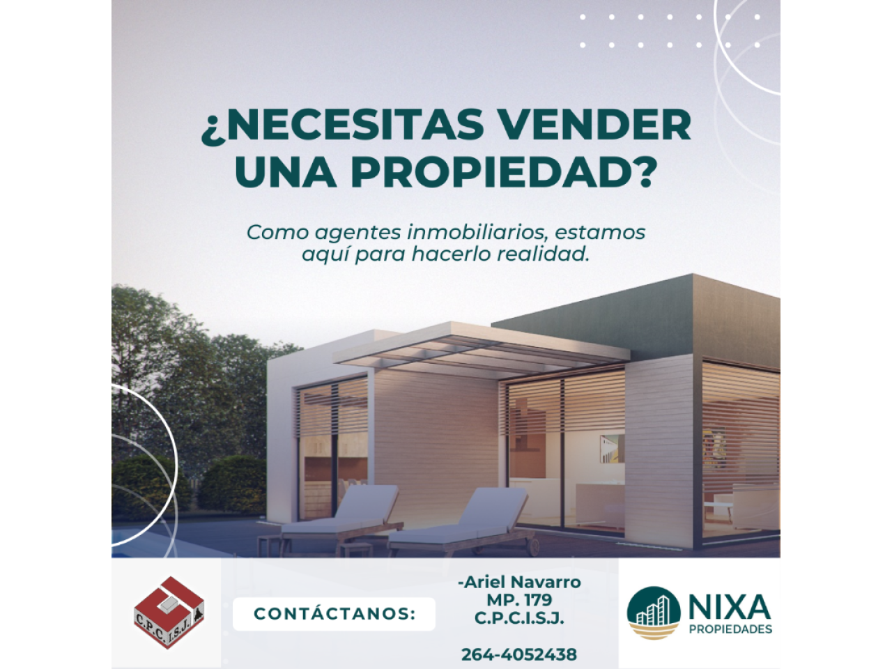 vendemos y alquilamos tu inmueble, administraciones- nixapropiedades@gmail.com; Contacto WhatsApp: Ariel: 2644052438