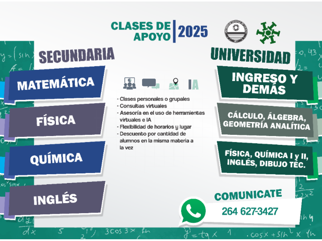 Preparación integral Secundario, Ingreso a la Universidad, Parciales y Finales.