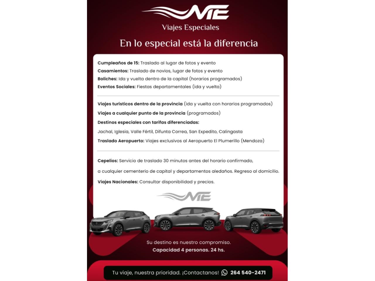 Viajes Especiales MyE , presupuestos sin cargos , consultas al 2645402471 se reciben llamadas