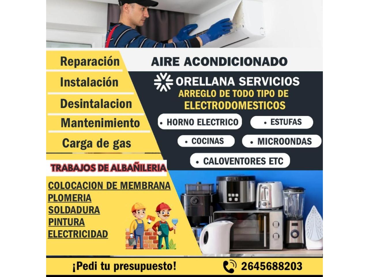 Hola realizó todo tipo de trabajo para el hogar y arreglo de todo tipo de electrodoméstico tambien me especializó en aires acondicionados .
