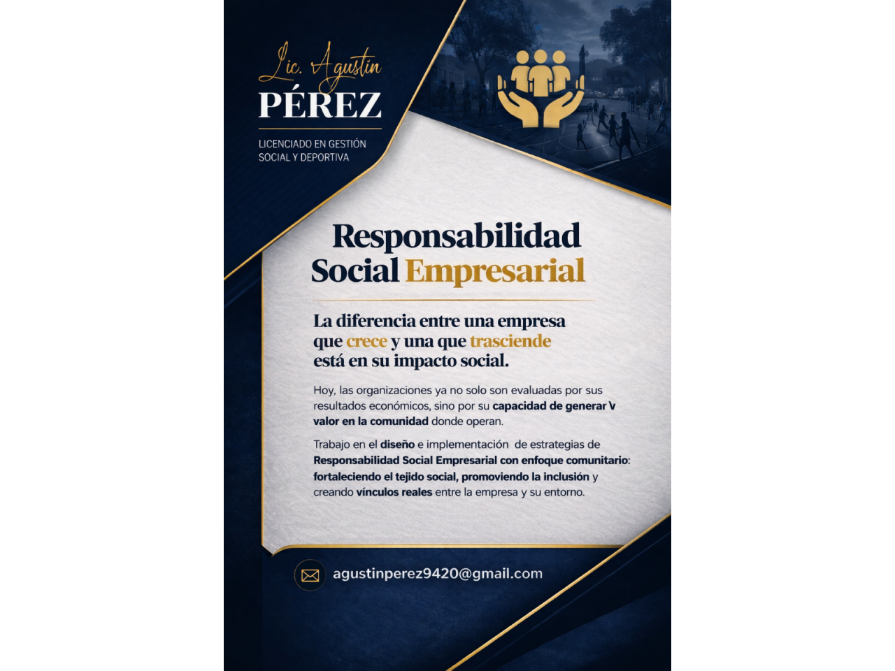 Hoy, las organizaciones ya no solo son evaluadas por sus resultados económicos, sino por su capacidad de generar valor en la comunidad donde operan. Desde mi rol como Licenciado en Gestión Social y Deportiva, trabajo en el diseño e implementación de estrategias de Responsabilidad Social Empresarial con enfoque comunitario: programas que fortalecen el tejido social, promueven la inclusión y generan vínculos reales entre la empresa y su entorno.