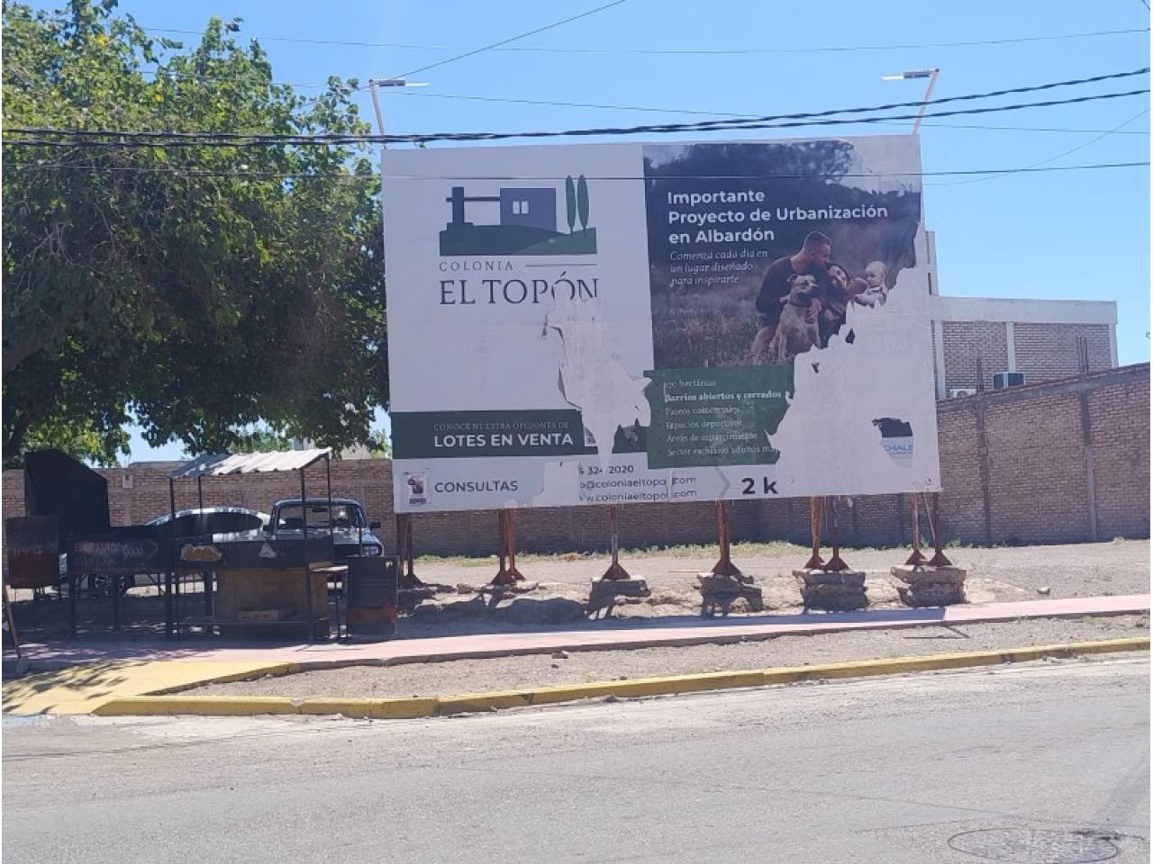 Alquiler espacio publicitario en excelente ubicacion en el departamento. Cartel con dimensiones de 5.10 metros de ancho por 4.20 metros de alto, en zona de alto transito vehicular