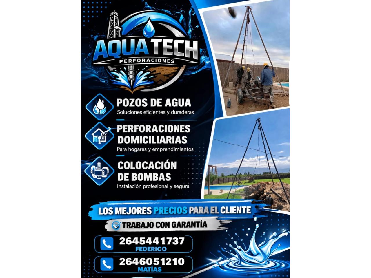 Realizamos perforaciones pozos de agua en todo San Juan trabajamos con máquina rotativa y máquina percusión llegamos hasta 300 m de profundidad trabajamos con contratos por medio con 50% al iniciar y el otro 50% al terminar el trabajo.