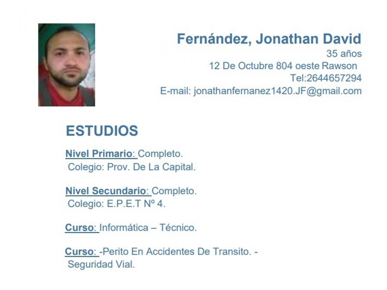 Hola soy jonathan fernandez busco trabajo, tengo conocimientos en pc, cajero, repositor, encargado de stock, quiero crecer y aprender, si no lo se soy de aprender rápido. muchas gracias. Con carnet A-B