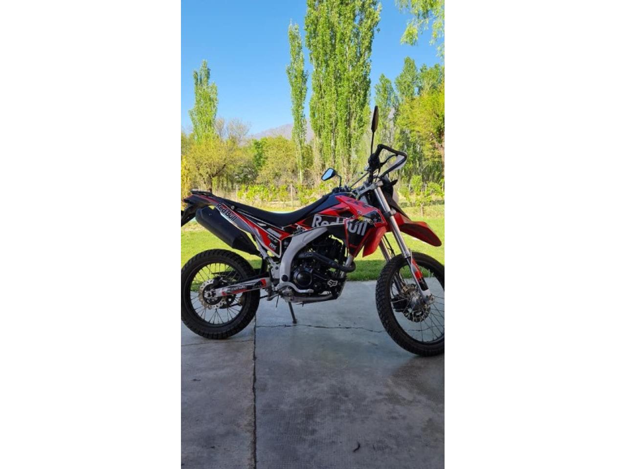 Equipamiento:Color: Roja, negra y blanca Corven TRX 250cc L, caja 6ta, con radiador de aceite, horquilla invertida, doble freno a disco. Calcos REDBULL, chapón cubre carter, parabrisas, cubre puños Wirtz, baulera 48 lt (para dos cascos) POR ESTA SEMANA: Se va con dos cascos Hawk enduro.