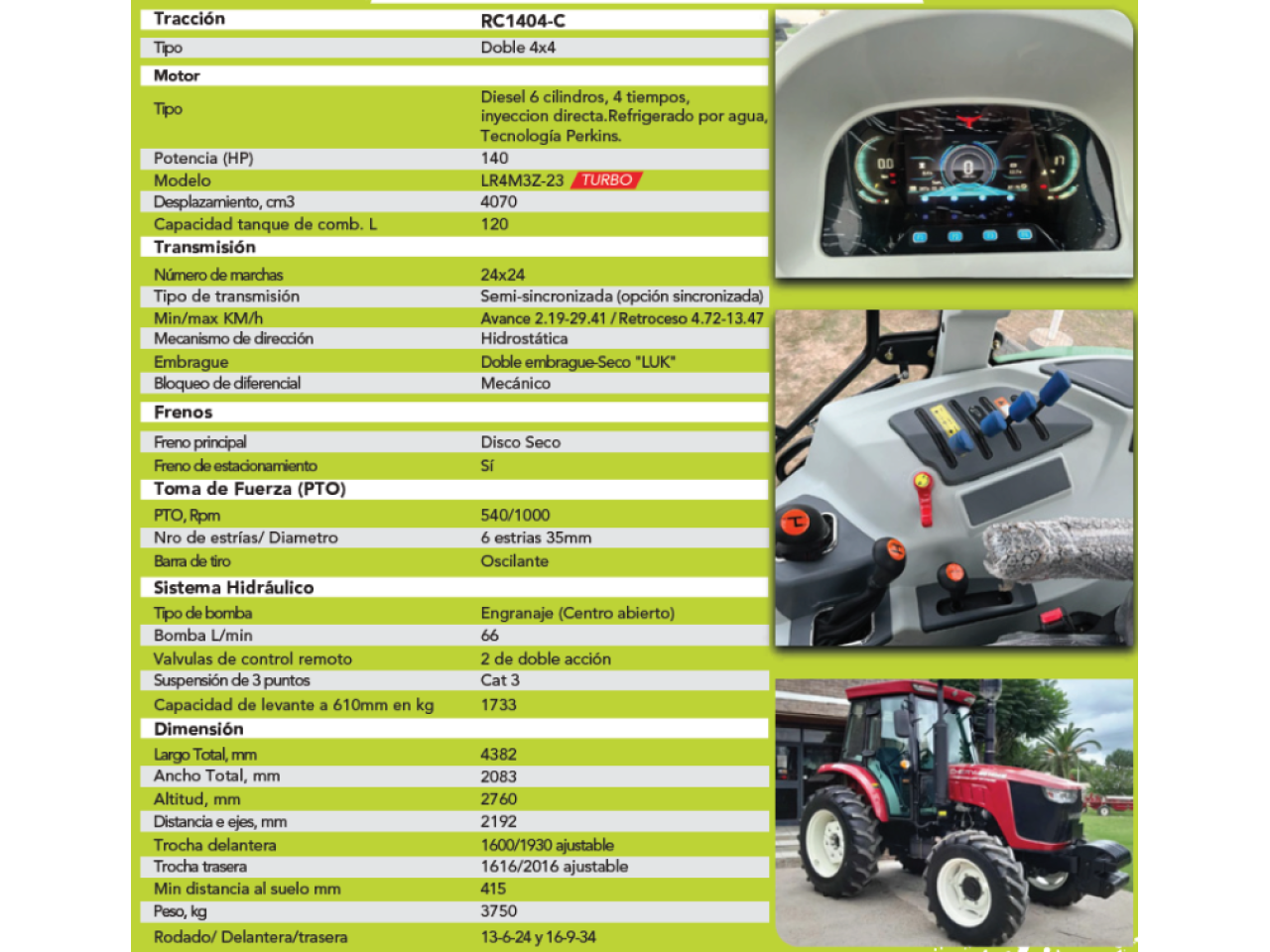 Version:TRACTOR CHERY RC1404C - 6 CILINDROS - 140HP TURBO