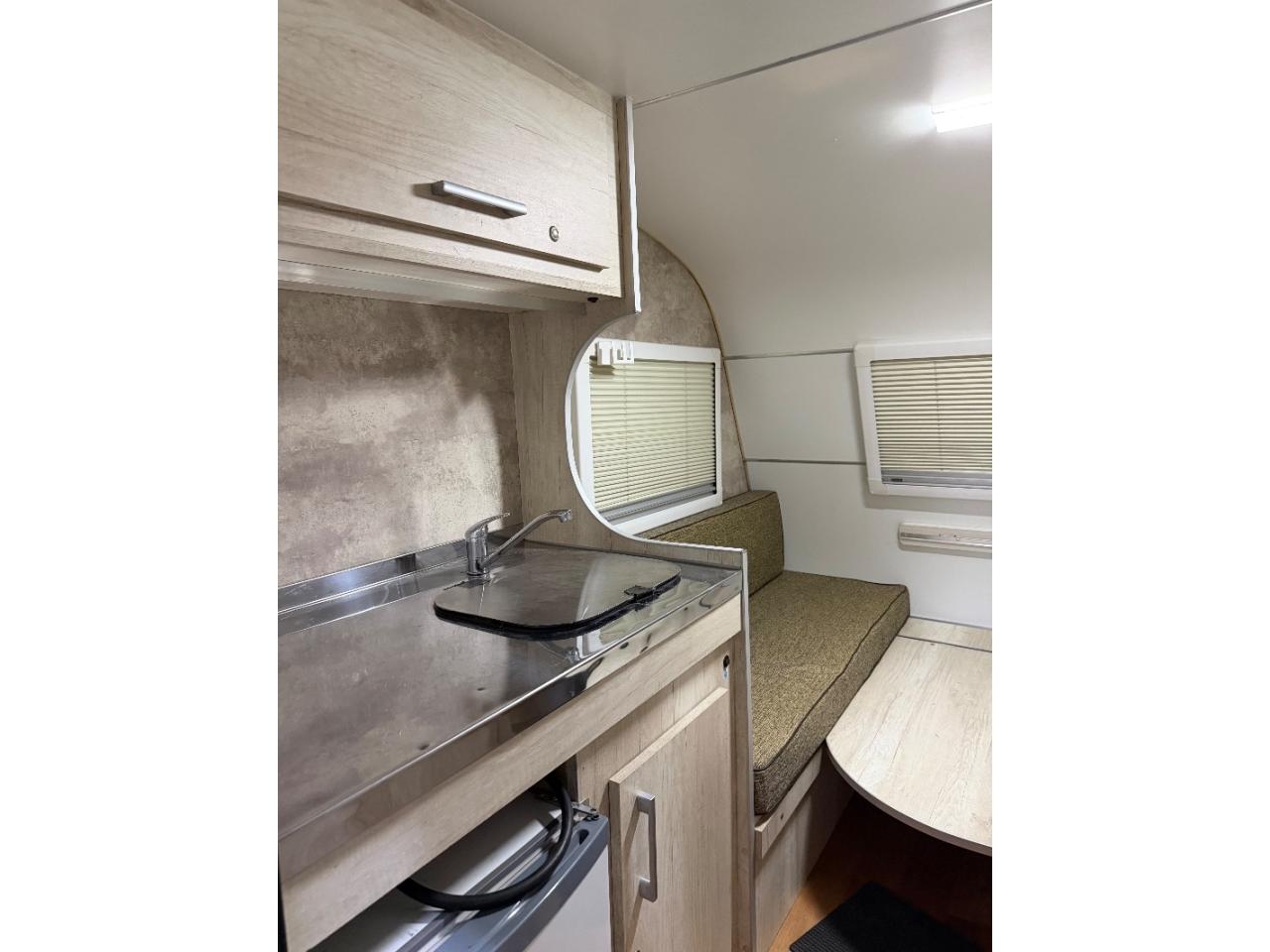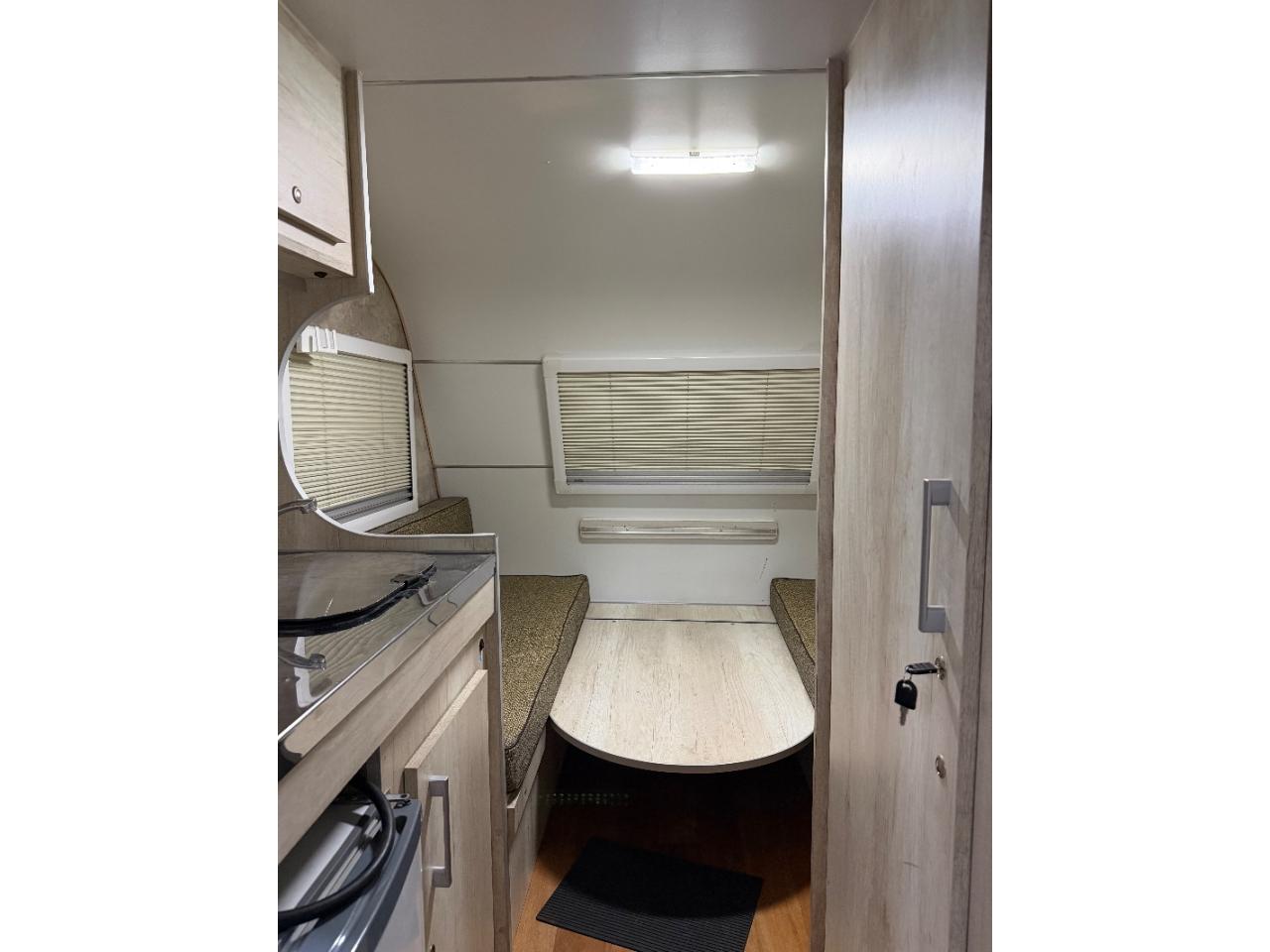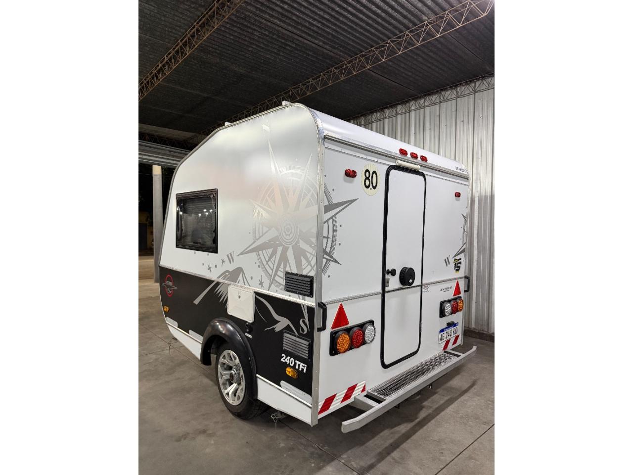 Equipamiento:Para 2 personas, baño con lavabo ducha, calefón instantáneo, calefactor tiro balanceado, cocina con lavabo, panel solar, batería ciclo profundo, conversor 1500W, cuadro ducha externo, llantas de aleación, luces led, patentada, rueda de auxilio, liviana, cajon delantero para guarda y hacer de comer. Tiene accesorios fuera de estándar: Ventanas Americanas, Cajón, frenos eléctricos y cuadro ducha externo