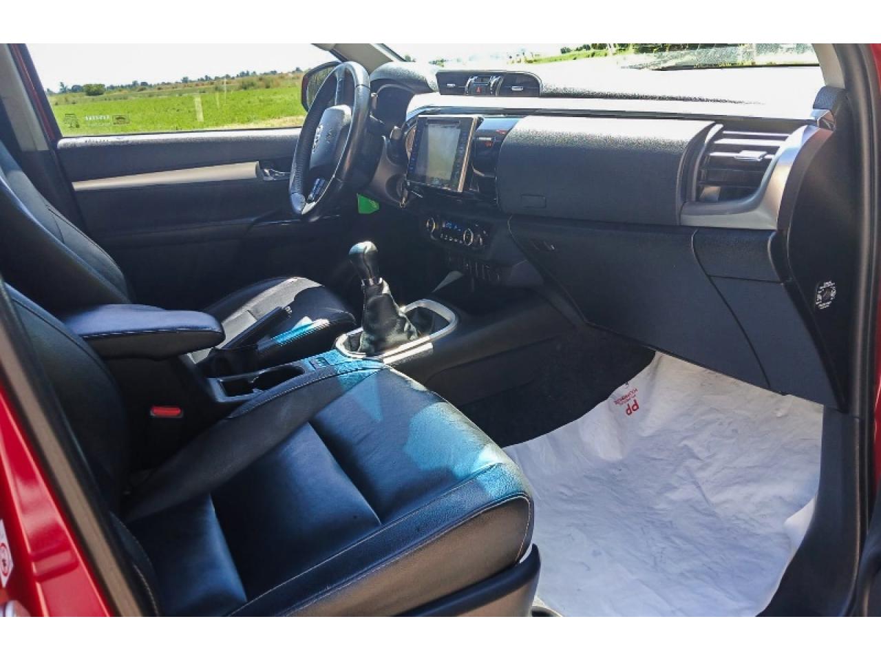 Equipamiento:Principales Marca Toyota Modelo Hilux Pick-Up Año 2016 Versión 2.8 Cd Srv Pack 177cv 4x2 Color rojo Tipo de combustible Diésel Puertas 4 Transmisión Manual Motor 2.8 Tipo de carrocería Pick-Up Kilómetros 175.000 km Exterior Llantas de aleación Sí Entretenimiento DVD Sí Reproductor de MP3 Sí Interior Tapizado de cuero Sí Dimensiones Largo x Altura x Ancho 5260 mm x 1850 mm x 1855 mm Confort y conveniencia Piloto automático Sí Comando remoto para radio en el volante Sí Información general Dirección Hidráulica Alarma Sí Rendimiento y dimensiones Control de tracción 4x2 Capacidad de personas 5 Potencia 177 hp Distancia entre ejes 2.860 mm Capacidad del tanque 80 L Válvulas por cilindro 2 Seguridad Frenos ABS Sí Airbag para conductor y pasajero Sí Control de estabilidad Sí Tracción ASR Sí Condiciones de compra Único dueño Sí