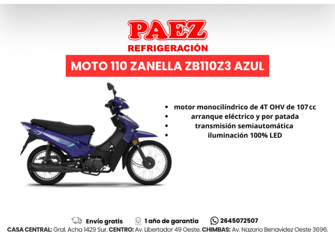 Zanella Zb 110 Full Nuevo Modelo 0km 2026