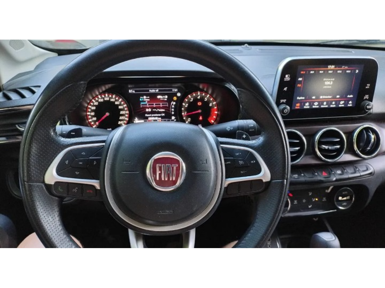 Equipamiento:Motor 1.8 Cadenero Caja automática 6 velocidades opcional manual secuencial o levas al volante Espejos exteriores color carrocería Faros antiniebla delanteros Faros delanteros con firma LED (DRL - Daytime Running Lights) Llantas de aleación 17 Manijas de puertas cromadas Paragolpes color carrocería Parante central negro Ópticas traseras tipo LED Tercera luz de stop Capacidad baúl 525lts con apertura remota 2 Airbags (frontales conductor y pasajero) 2 Airbags laterales Alarma Perimetral Alerta de cinturones de seguridad (seat-belt reminder) Apoyacabezas regulables en altura Apoyacabezas traseros (3) Cámara de estacionamiento trasera Cinturones de seguridad delanteros reg. en altura Cinturones de seguridad posteriores de 3 puntos Control electrónico de traccion (TC) y estabilidad (ESC) Inmovilizador de motor (Fiat Code) Sensores de estacionamiento traseros Sistema de asistencia al arranque en pendiente (HLA) Sistema de frenos ABS + EBD Sistema de Monitoreo de Presión de Neumáticos (TPMS) Sistema de sujeción de sillas para niños (ISOFIX) Climatizador automático Cierre centralizado de puertas + traba automática en movimiento Control de velocidad crucero Computadora de a bordo Dirección asistida eléctricamente Asiento conductor con regulación manual Espejo retrovisor interno electrocrómico Espejos retrovisores eléctricos, rebatibles con luz de acceso Levas en volante Levantacristales eléctricos delanteros y traseros "one-touch up/down" (4) Apertura y encendido sin llave (Keyless Entry N Go) Sensores de lluvia y crepuscular Volante regulable en altura y profundidad Volante forrados en cuero Sistema "My Car Fiat" y "Follow Me Home" Display multifunción color 7,0 Pantalla multimedia touch 7 con Android Auto y Apple Carplay Gestión de dispositivos por comandos de voz Tapizado de cuero Toma de 12V Volante multifunción Tacómetro