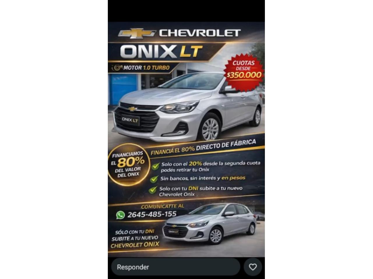 Plan Chevrolet Onix 40/120 Cuotas