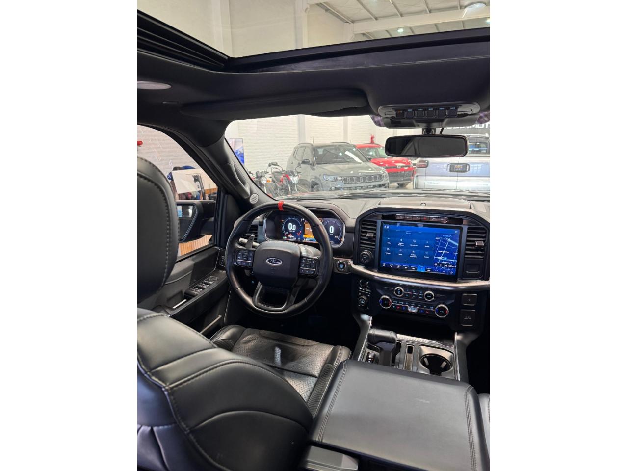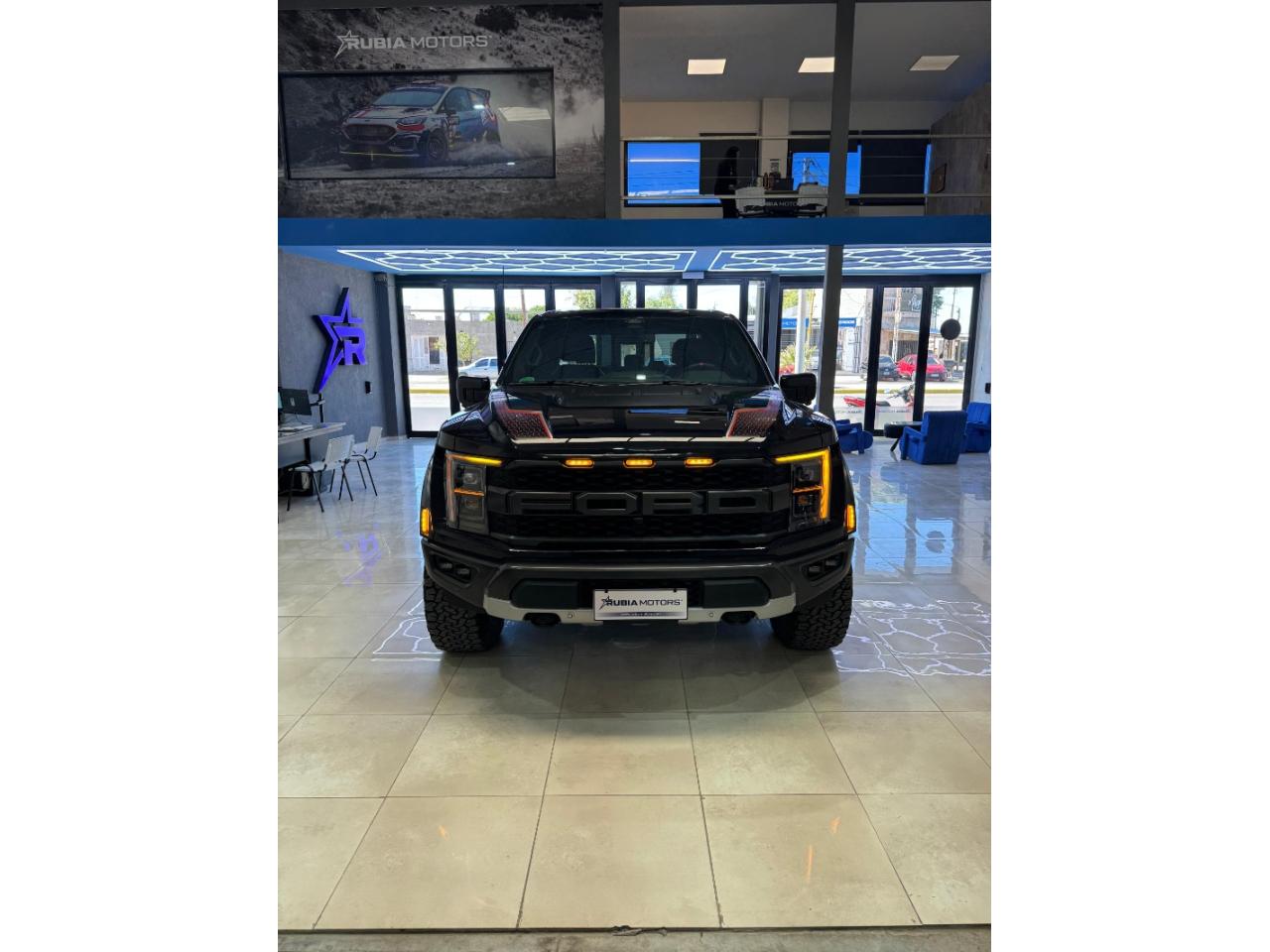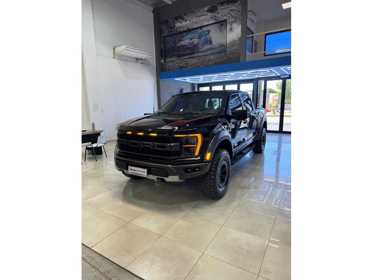 Equipamiento:🚗 Ficha Técnica – Ford F-150 Raptor 3.5 EcoBoost 2022 🔧 Motor y mecánica Motor: 3.5L V6 EcoBoost Biturbo Potencia: 456 CV Torque: 691 Nm Distribución: 24 válvulas Alimentación: Inyección directa + turbo doble Tracción: 4x4 (con modos de manejo) Caja: Automática de 10 velocidades ⚙️ Prestaciones Velocidad máxima: ~180 km/h (limitada) Aceleración 0-100 km/h: ~5,5 segundos Consumo promedio: ~13–15 L/100 km 📏 Dimensiones y capacidades Largo: 5.900 mm aprox. Ancho: 2.180 mm Alto: 2.000 mm aprox. Distancia entre ejes: 3.694 mm Capacidad de carga: ~600–700 kg Capacidad de remolque: hasta 3.700 kg Tanque de combustible: 136 litros 🛞 Suspensión y frenos Suspensión delantera: Independiente con amortiguadores FOX Racing Suspensión trasera: Eje rígido con sistema de 5 brazos + FOX Racing Frenos delanteros: Discos ventilados Frenos traseros: Discos ventilados 🛋️ Confort y equipamiento Tapizados en cuero y alcántara Asientos eléctricos con calefacción y ventilación Climatizador automático bi-zona Pantalla multimedia táctil (SYNC 4) Navegación GPS Cámara 360° Sensores de estacionamiento Volante multifunción deportivo Sistema de sonido premium (Bang & Olufsen) Arranque sin llave (Keyless) Modos de conducción (Normal, Sport, Baja, Off-Road, etc.) 🛡️ Seguridad Múltiples airbags (frontales, laterales y de cortina) ABS con EBD Control de estabilidad (ESP) Control de tracción Asistente de mantenimiento de carril Frenado autónomo de emergencia Control de crucero adaptativo Monitor de punto ciego Asistente de descenso y ascenso