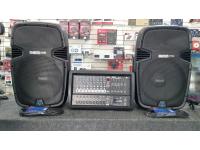 Combo Mixer Potenciado Moon 12 Canales + Bafles Moon Pasivos + Cables Speakon